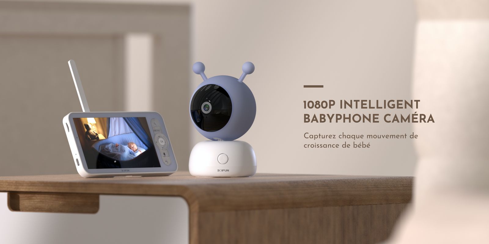Babyphone Caméra Boifun avec contrôle via application mobile et monitor - Simple ou Double