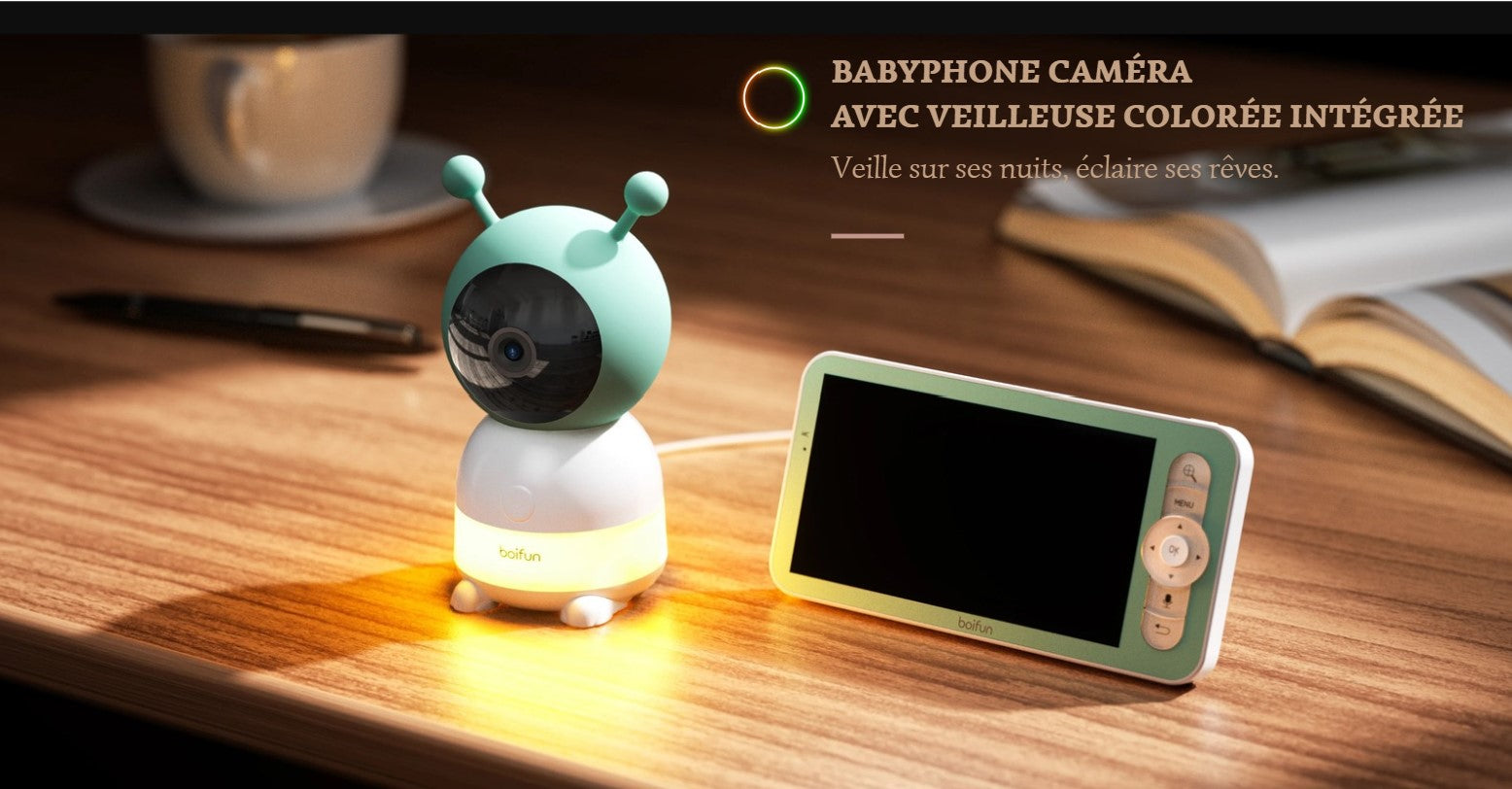 Babyphone Bébé Caméra BOIFUN 2K 5″ avec ou sans Veilleuse – Application Mobile, Rotation 360°, Surveillance et Suivi Automatique